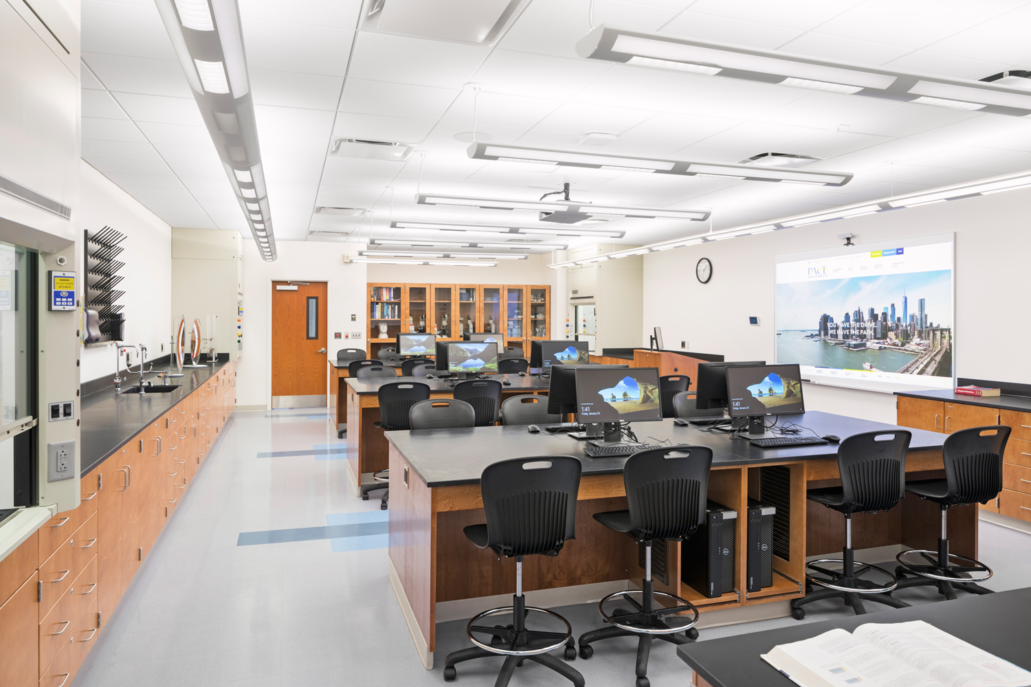 In a field that is consistently at the forefront of research and development, it is critical to provide the appropriate facilities to support both commercial and academic studies. Our team has successfully equipped our clients with a multitude of laboratory types, from wet labs to dry labs, from research labs to teaching labs. Thoughtfully installing and retrofitting spaces with data, heating, air supply and extraction, light, moisture, and life safety requirements. This not only equips the current users with state-of-the-art facilities but sets up the space for future advancements in technology and practices.