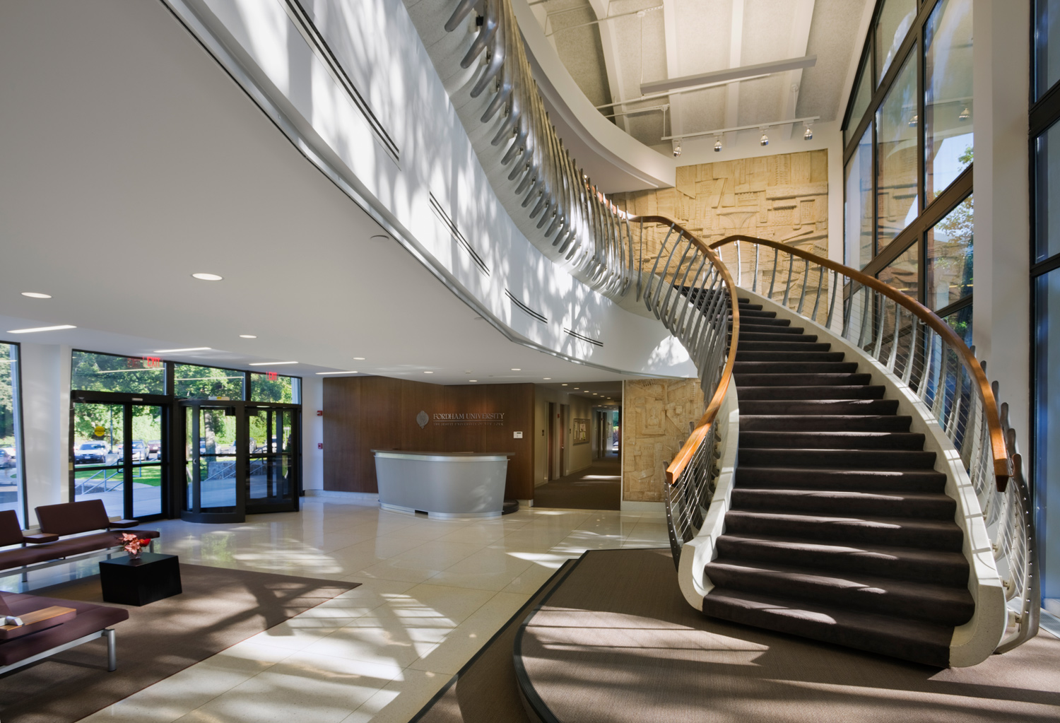 Fordham University’s Westchester Campus is an award-winning 62,000 Sq. Ft. adaptive reuse of an existing three-story commercial building. It established a new graduate school in Harrison, NY, that is oriented to continuing education students from Westchester County and the surrounding area. The building accommodates smart classrooms, seminar rooms, computer laboratories, departmental offices, a learning resource center, a multipurpose room, a student lounge, and a chapel. The design also includes wireless internet throughout the building and all audio-visual requirements.