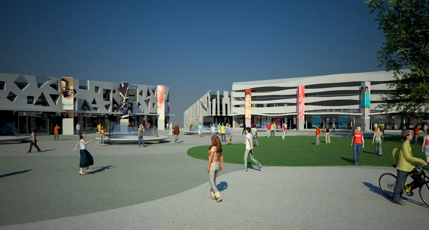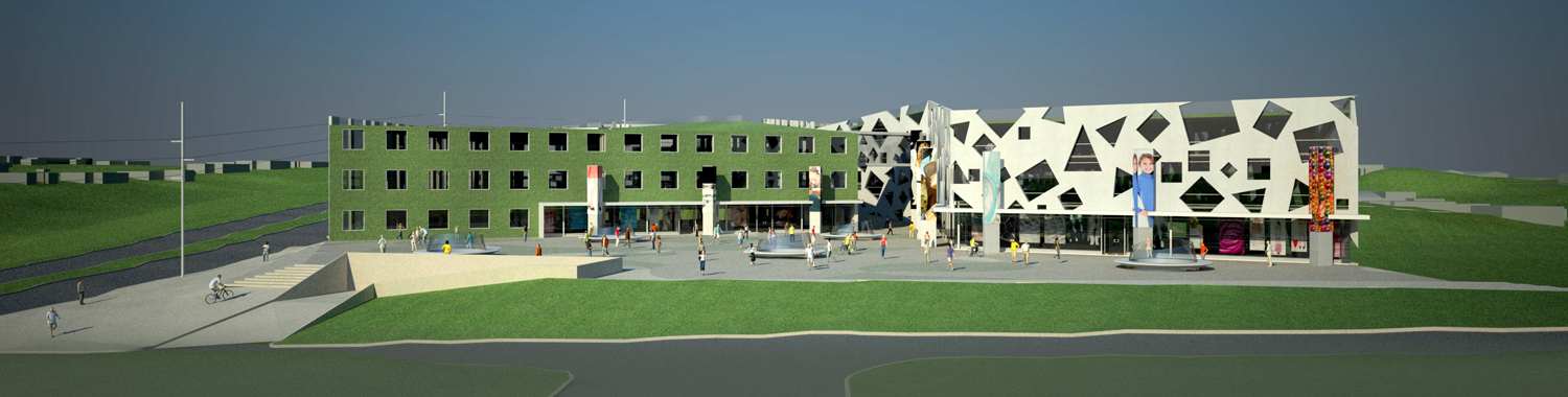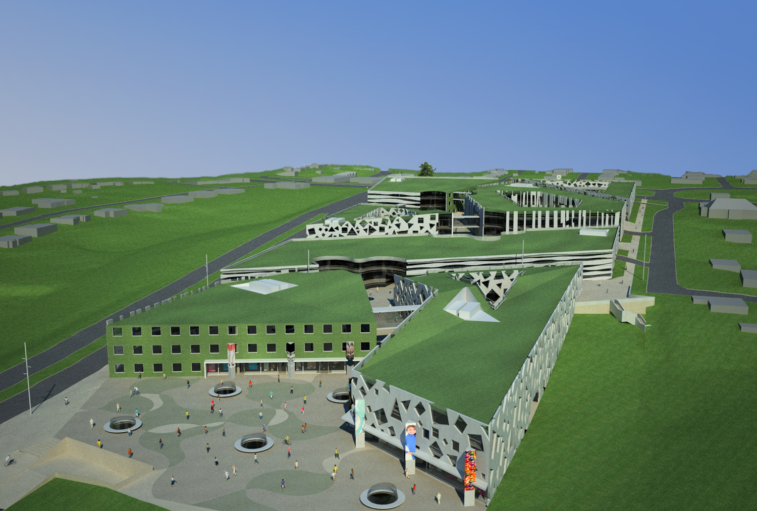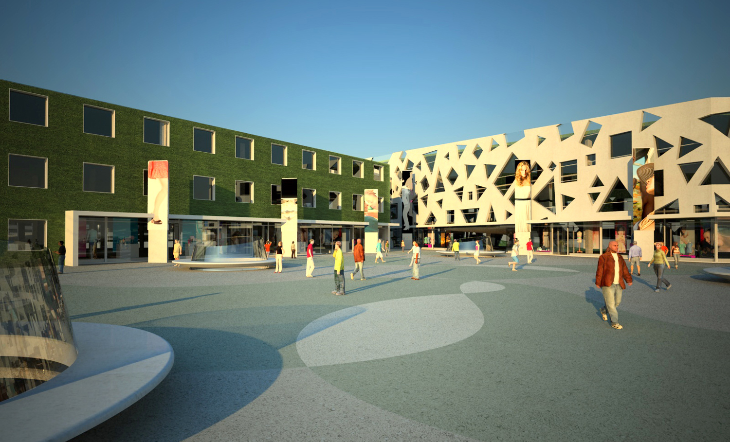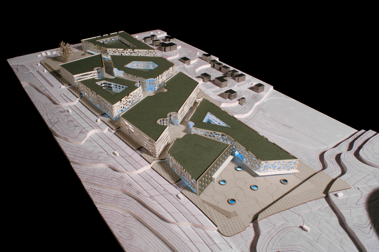 The project is built out in 3 phases. Phase 1 consists of a 78-room hotel with meeting facilities, a restaurant, approximately 24,000 sq ft of retail space, and 34,000 sq ft of office space on a plaza that faces the city. A tree farm populates the unbuilt portions of the site during the initial phases.