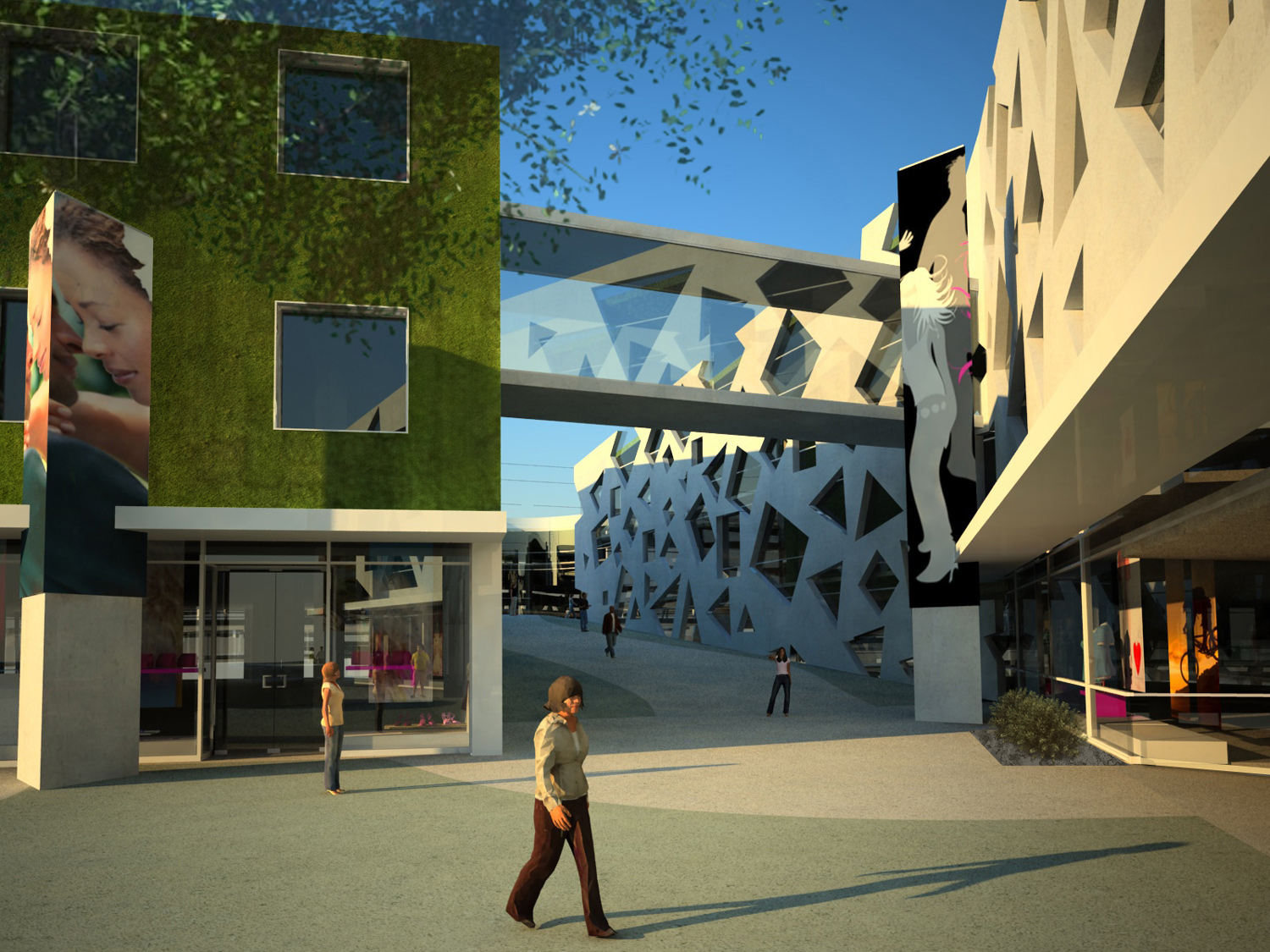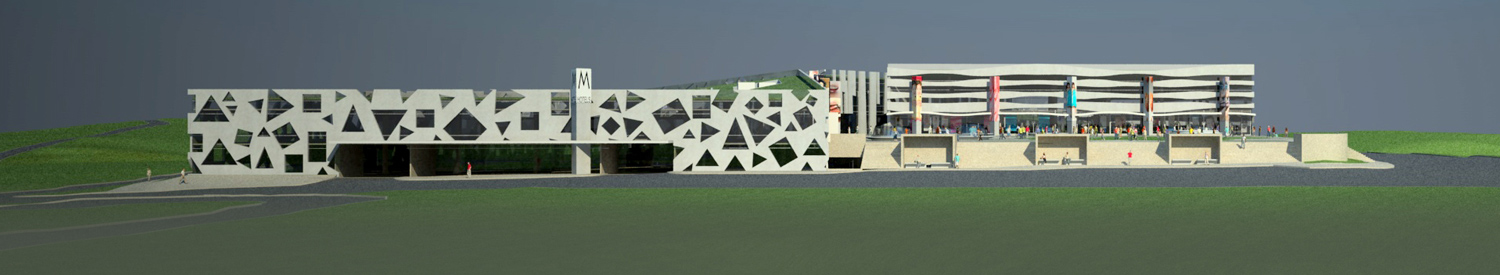 The 420,000 sq ft mixed-use research park at the front door of Northern Kentucky University is the winning entry to a limited design competition that originally only asked for 220,000 sq ft. plus parking. The design solution uses RIGHT-OF-WAY constraints as assets to make a pedestrian-friendly, flexible, and sustainable office, retail, and hotel “front door” for the University.
