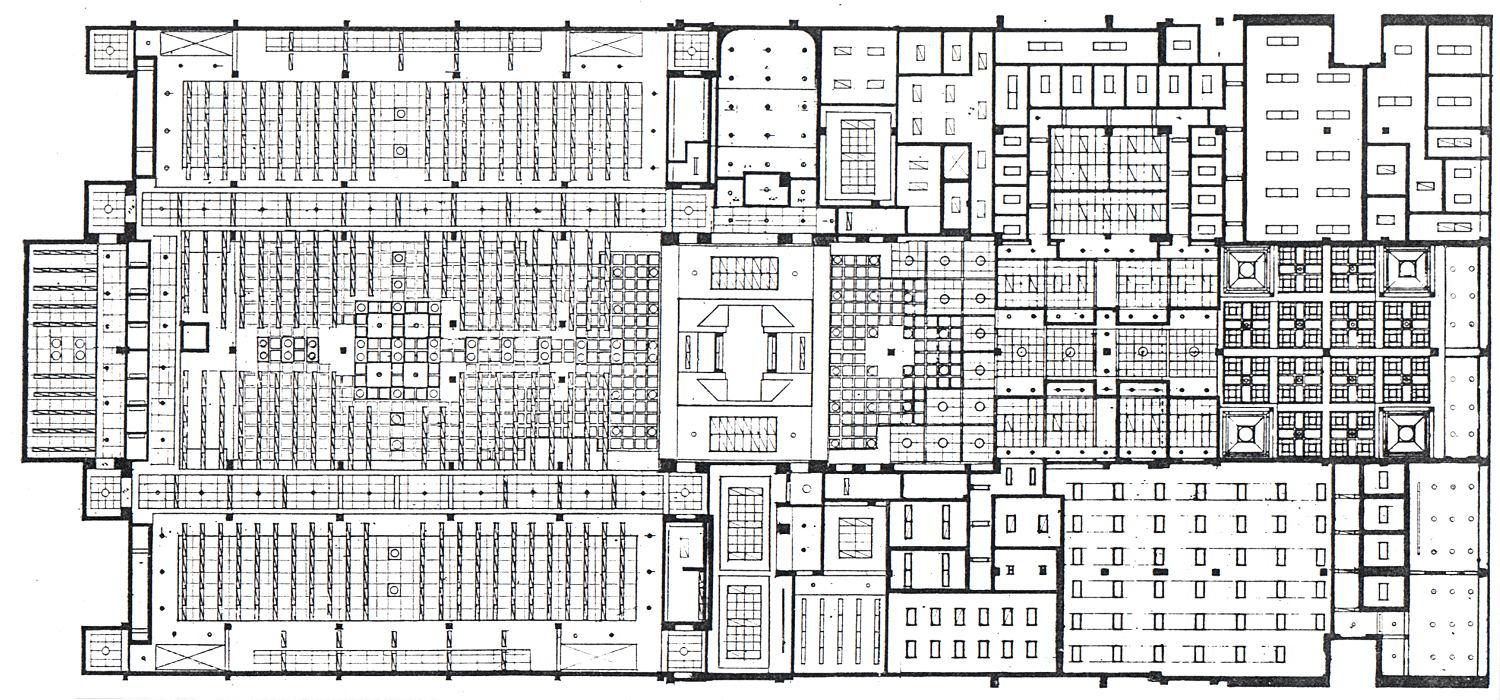 The new library extension provides reading rooms, stack areas for 3,000,000 books, special collection storage, librarians’ offices, a lecture hall, a print shop, sound-insulated music practice, and listening rooms, plus maintenance areas
