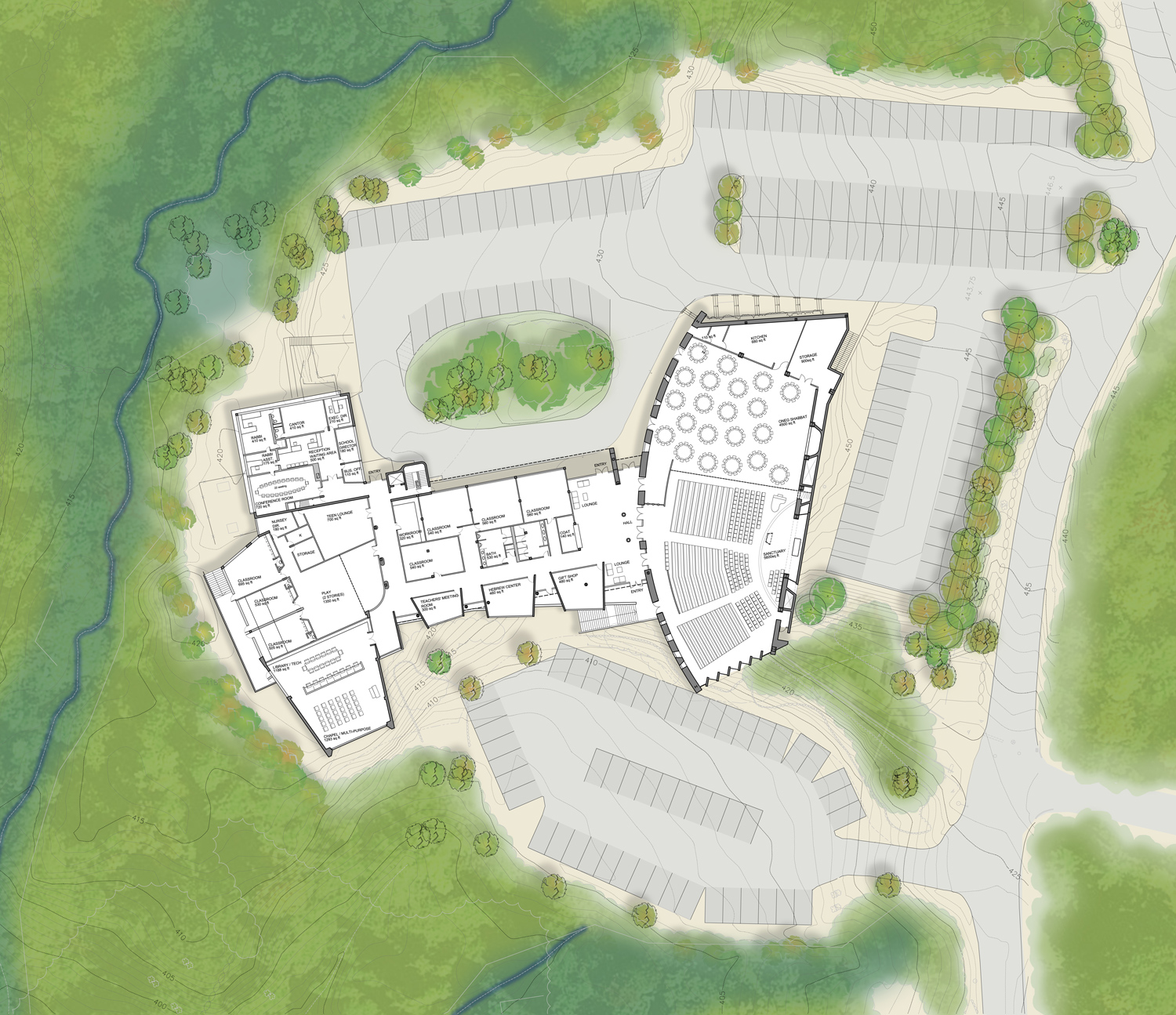 The addition to Temple Israel is expanding and renovating an existing synagogue. Sited in a seven-acre forest and wetlands area, the renovated existing 23,000 sq ft building is augmented with a 17,000 sq ft new sanctuary and social hall