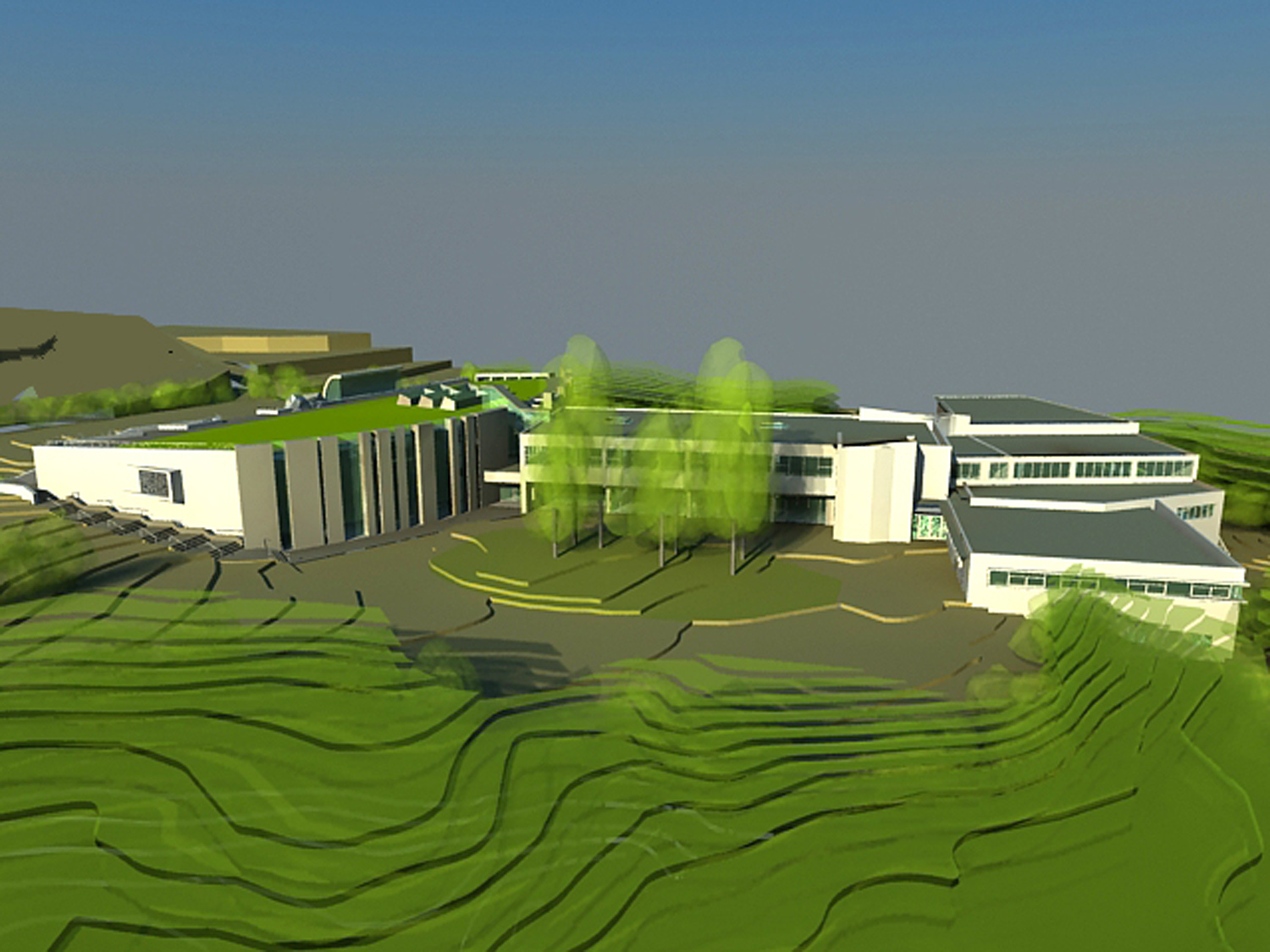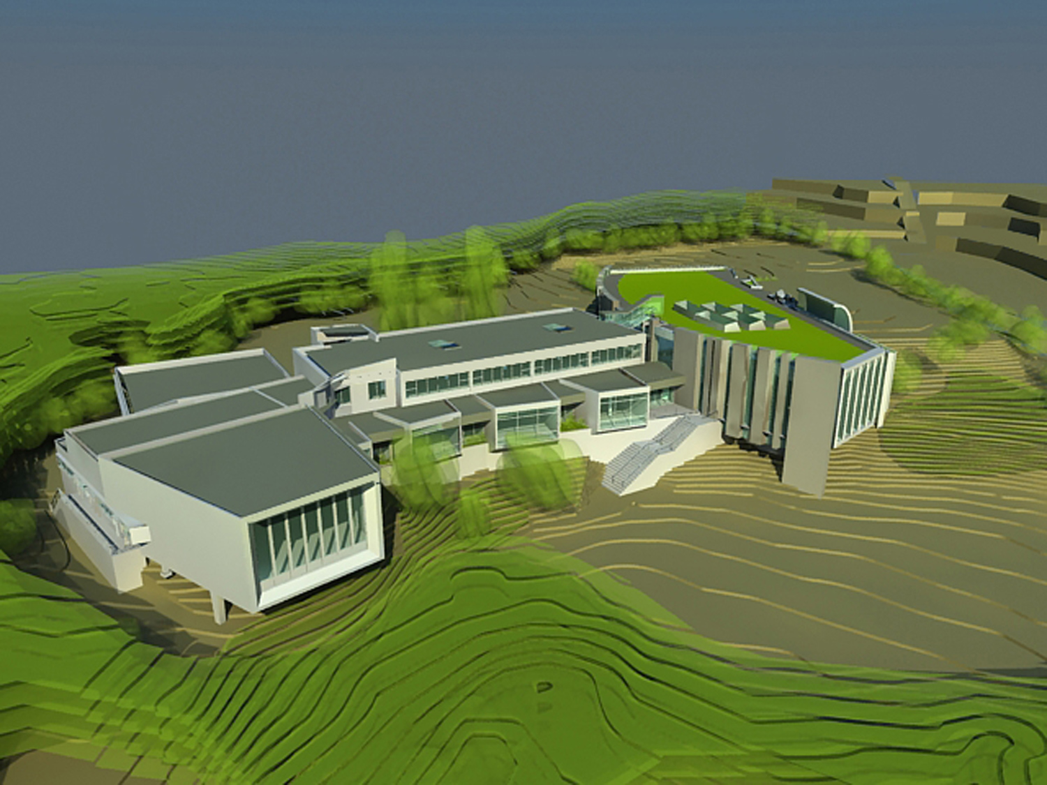 The expansion embodies sustainable principles by being partially buried into the hillside and covered with a green roof, thereby reducing the facility’s exposure to the elements and lessening its impact in the neighborhood.